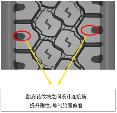 ■ ? 胎肩花紋塊之間設置連接筋,提升胎面整體剛性抑制胎面偏磨;