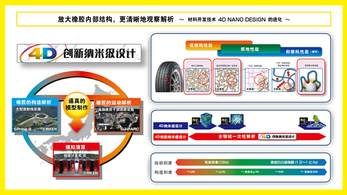 回顧?quán)嚨撈盏钠放瓢l(fā)展歷程,技術(shù)創(chuàng)新是出現(xiàn)頻率最高的關(guān)鍵詞。鄧祿普技術(shù)團(tuán)隊(duì)持續(xù)探索尖端科技,最新開發(fā)“4D創(chuàng)新納米級設(shè)計”技術(shù)運(yùn)用大型放射光設(shè)備“Spring-8”、高強(qiáng)度質(zhì)子加速器“J-PARC”和超級計算機(jī)“京”,從納米級微觀領(lǐng)域真實(shí)再現(xiàn)橡膠分子結(jié)構(gòu)及運(yùn)動形態(tài),使原材料的開發(fā)精度和效率實(shí)現(xiàn)了質(zhì)的飛躍,全面提升了輪胎產(chǎn)品的低油耗性能、抓地力性能和耐磨耗性能。